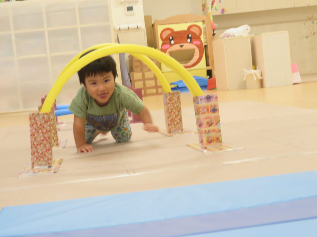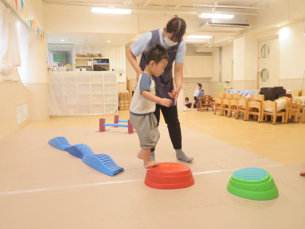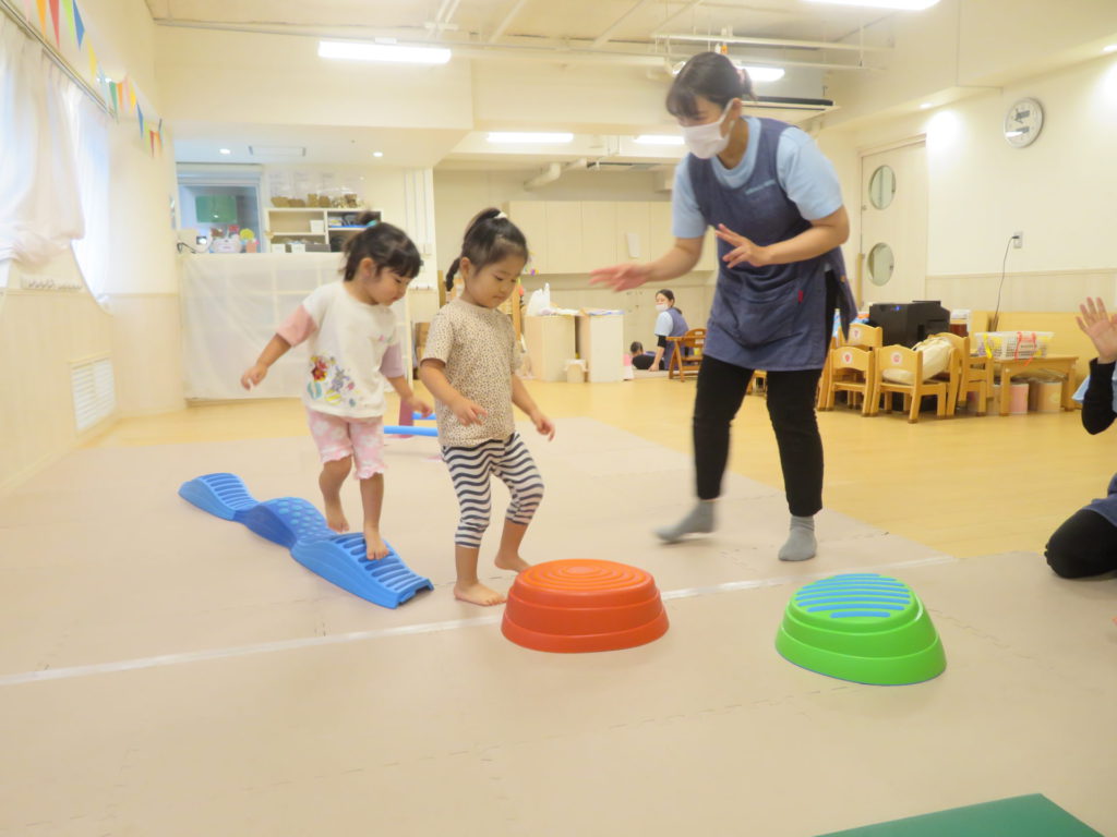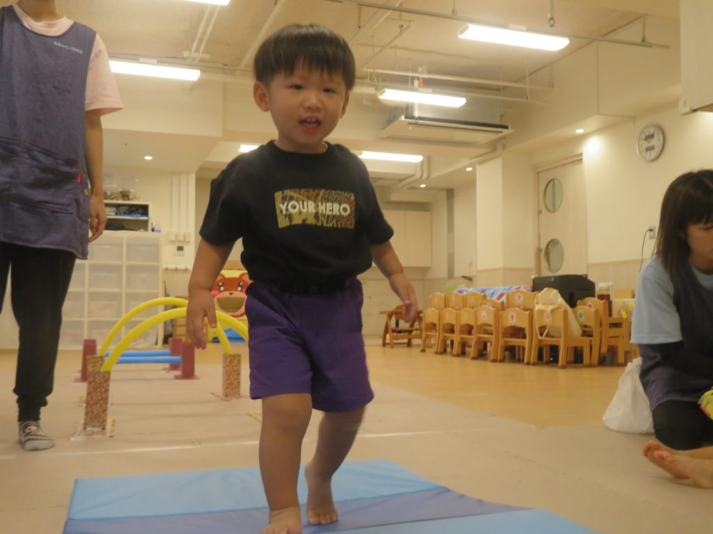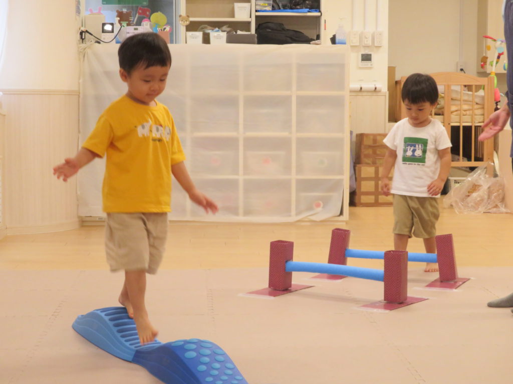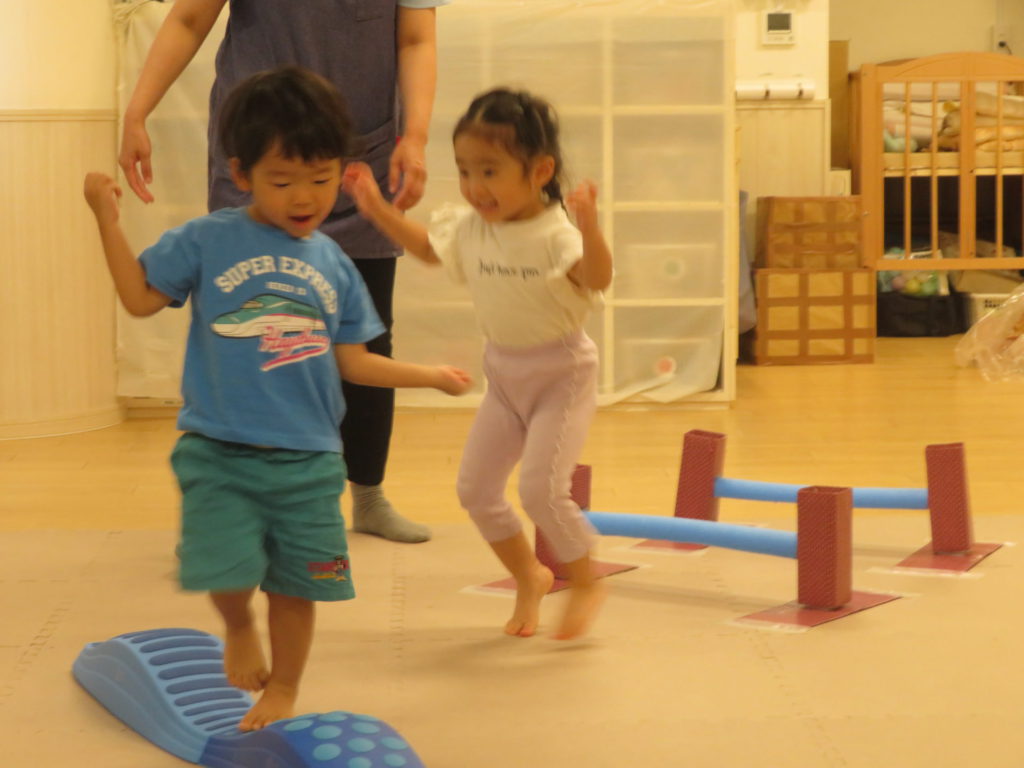 ハードルをジャンプして進んだり、平均台を渡ったり…