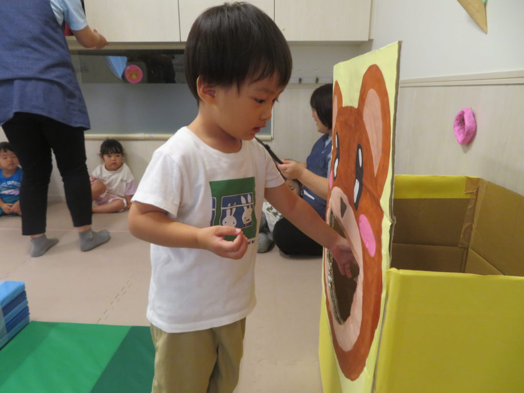 2種目めは、くま組2歳児「楽しいお菓子パーティー♪」です。