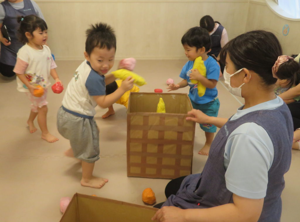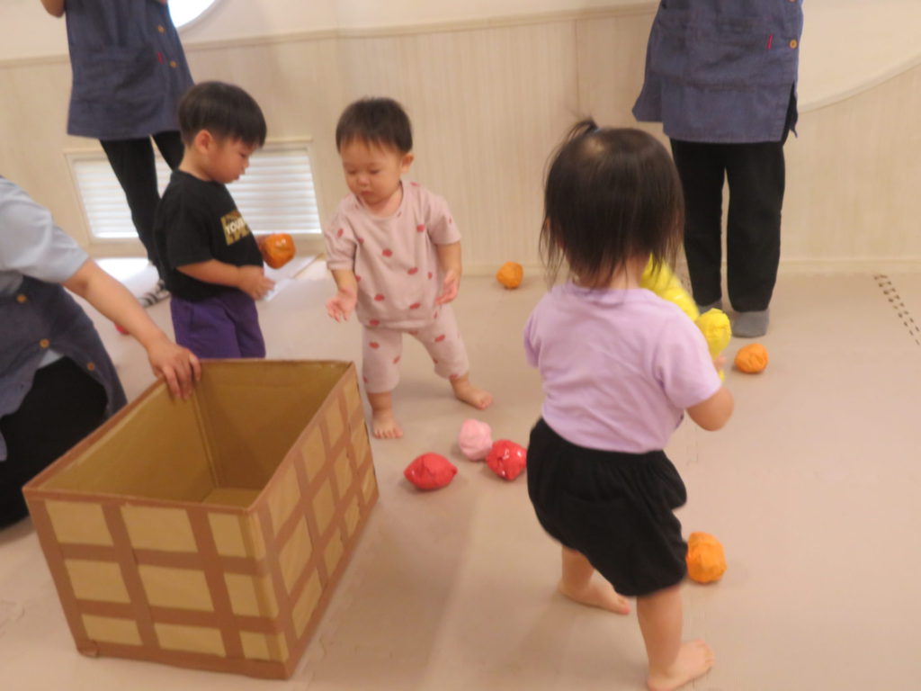 4種目めは1・2歳児合同「くだものさがしにいこう♪」です。