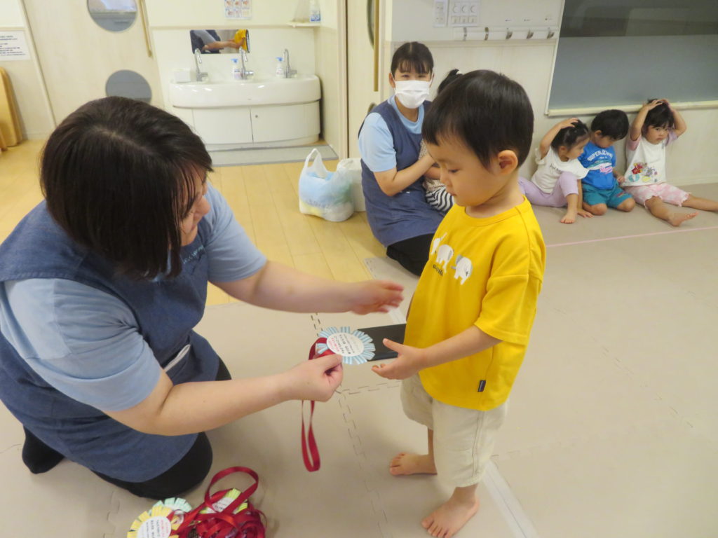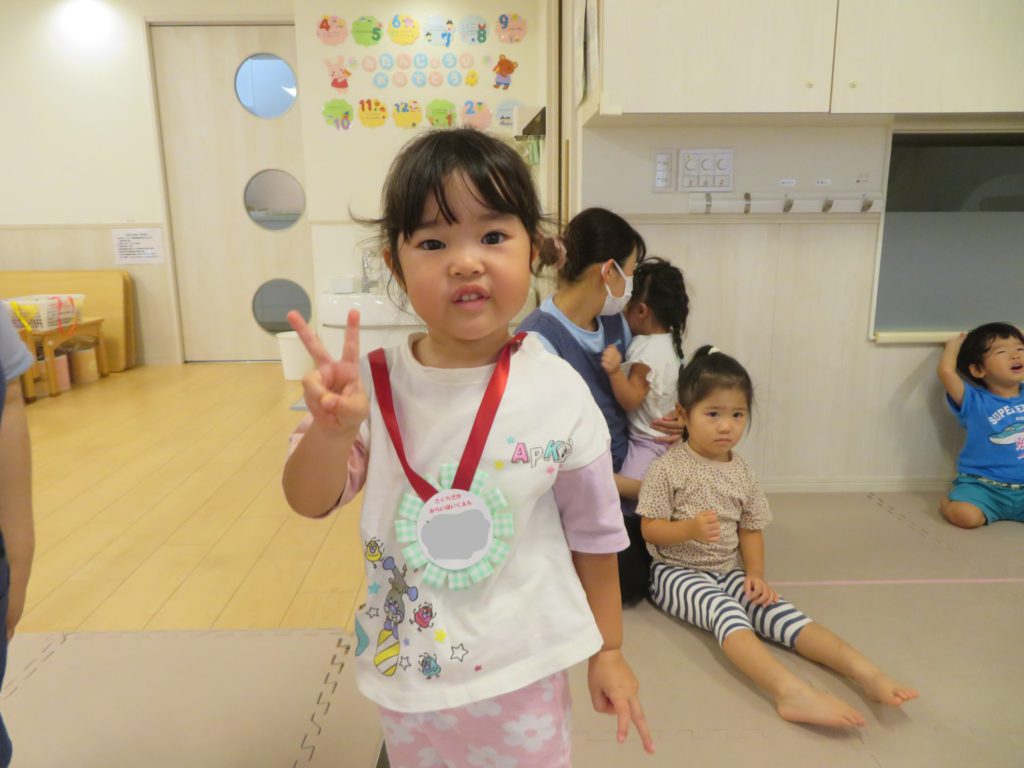これで競技は終了です。最後は園長先生からご褒美のメダルを貰いました♬