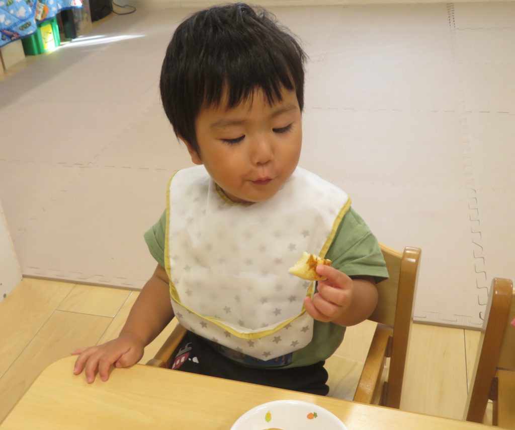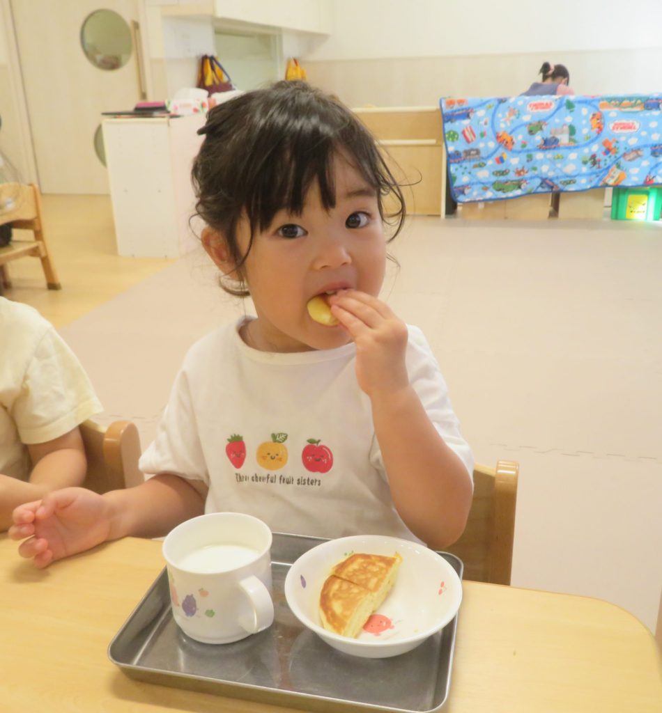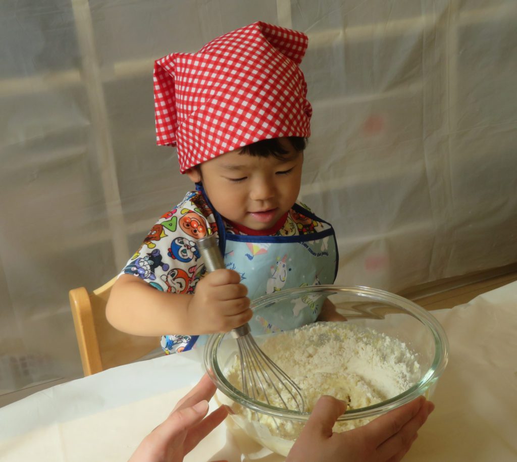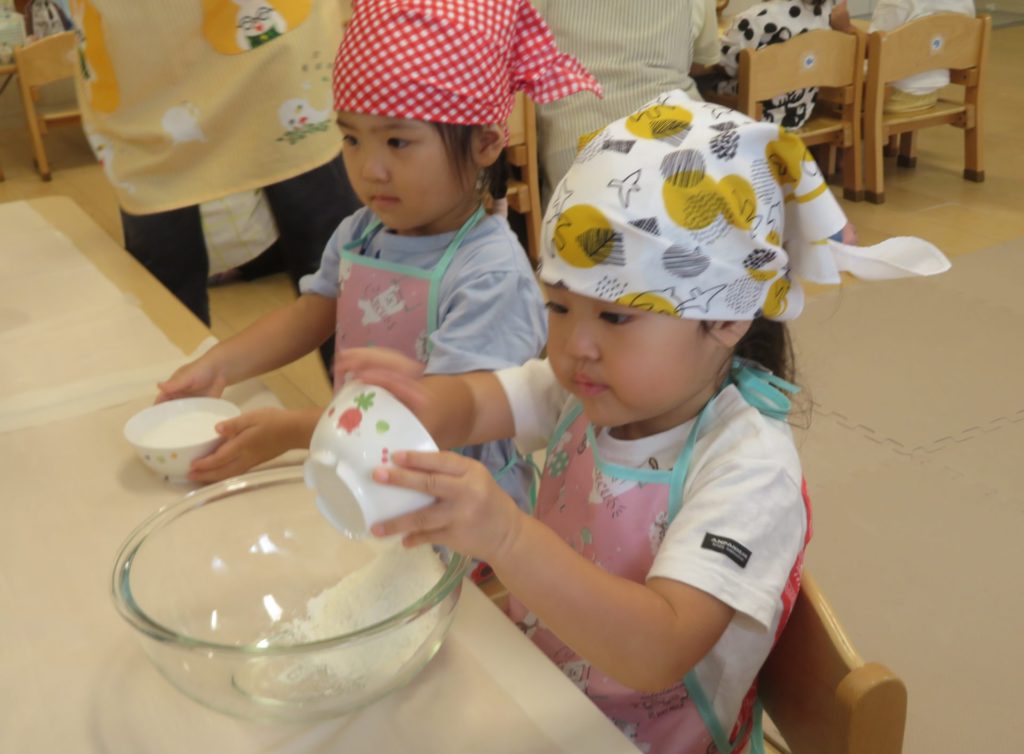 出来上がった生地は、3時のおやつの時間に子どもたちの目の前で焼きました!