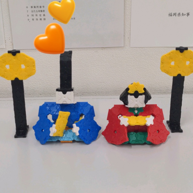 今月の壁画とみらいのお友達がLaQでひな人形を作ってくれました(^^♪