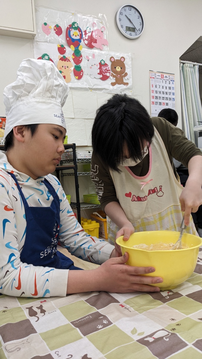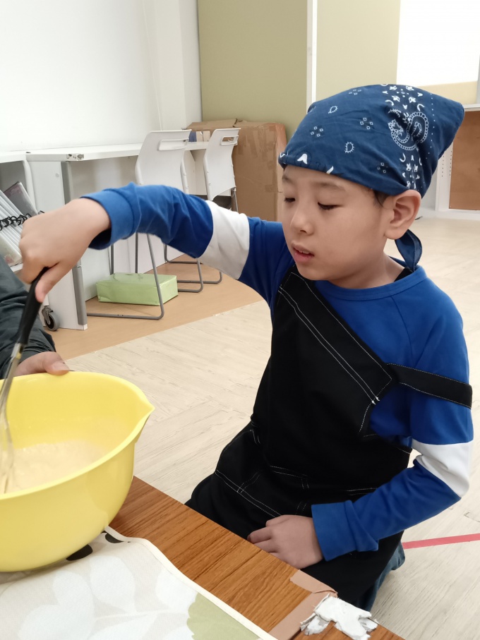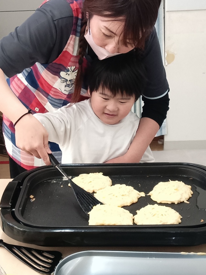 積極的に参加し、材料を混ぜるところからホットプレートで職員と一緒に焼くまで頑張りました(^^♪
