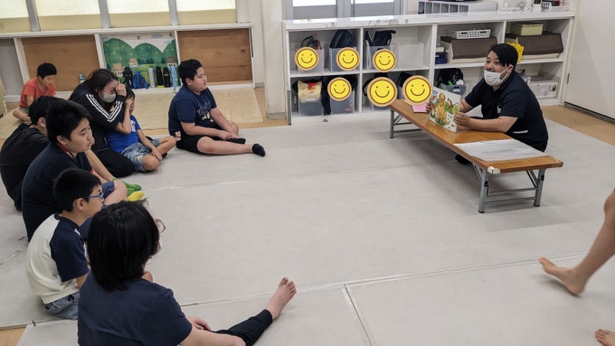 読み聞かせなのに・・・・まずは準備体操を行いました (笑)
