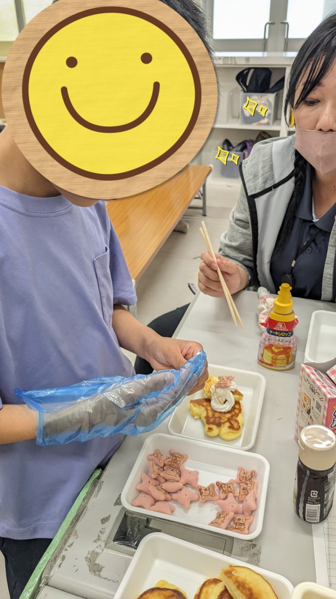 クッキングでホットケーキを作り・・・各々好きなトッピングをして全員美味しく完食です(*^^*)