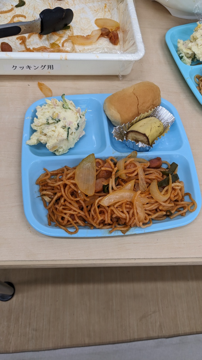 本日のメニューは・・・ナポリタン♪ポテトサラダ♪バナナ♪です