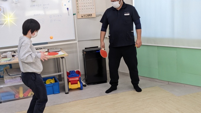 今回は新聞紙のボール回しや卓球のラケットを使用してのレクリエーションを行いました。
