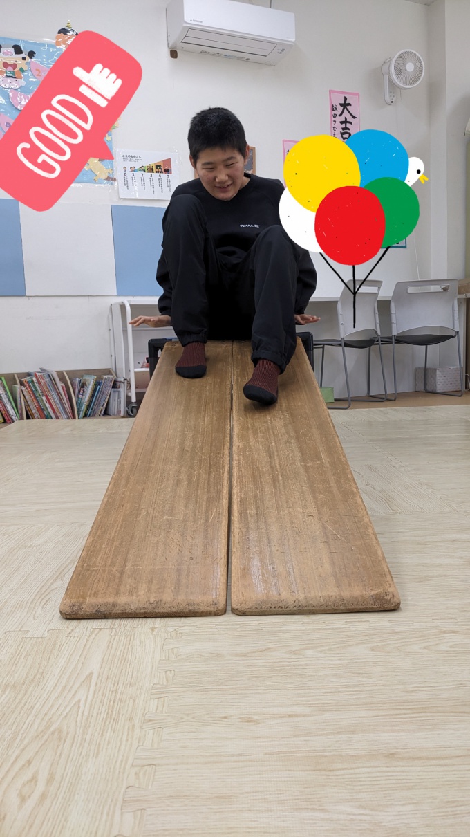 今回はおもちゃライブラリーですべり台とバランスボードを借りてきました!!