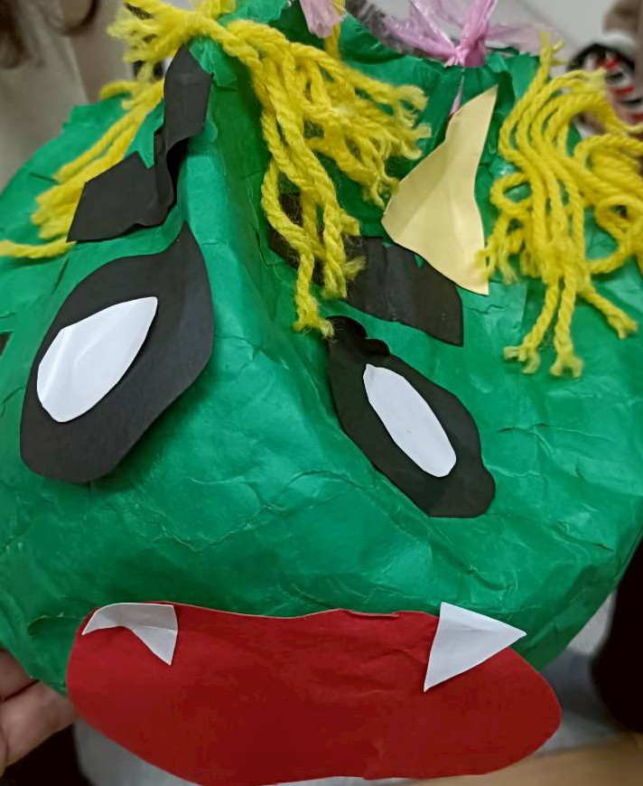 貼り付けて、鬼ピニャータを仕上げました!