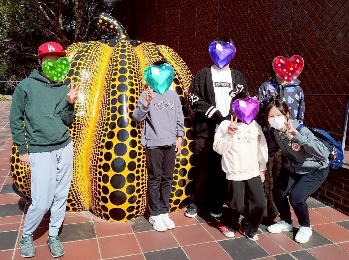 世界的に超有名な草間彌生さんのカボチャの前で記念撮影!