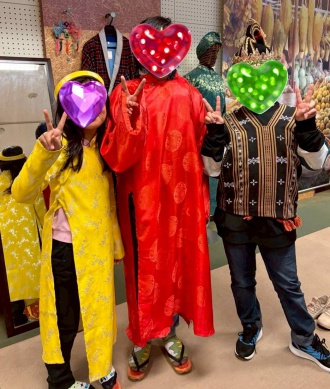 帰るまでの時間はみたいけんラボて、アジアの衣装を着てみたり、楽器を鳴らしてみたり、