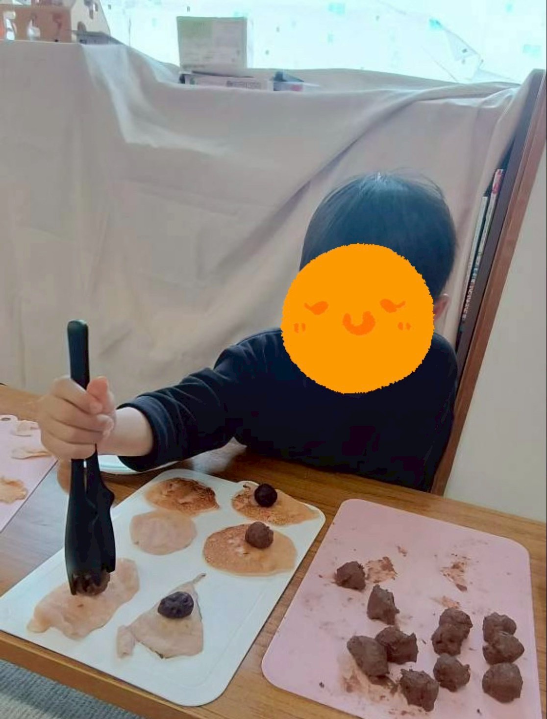 今回は、桜餅の中身をあんこだけでなくチョコを用意してあんこが苦手な子でも食べれるように2種類作りました。