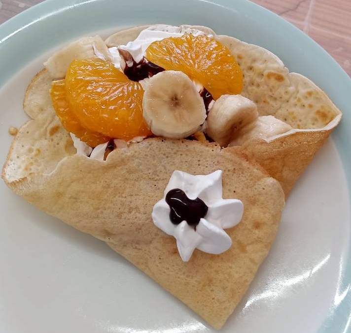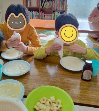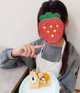 これにそれぞれ皆でクリームやフルーツをトッピングしていきます。