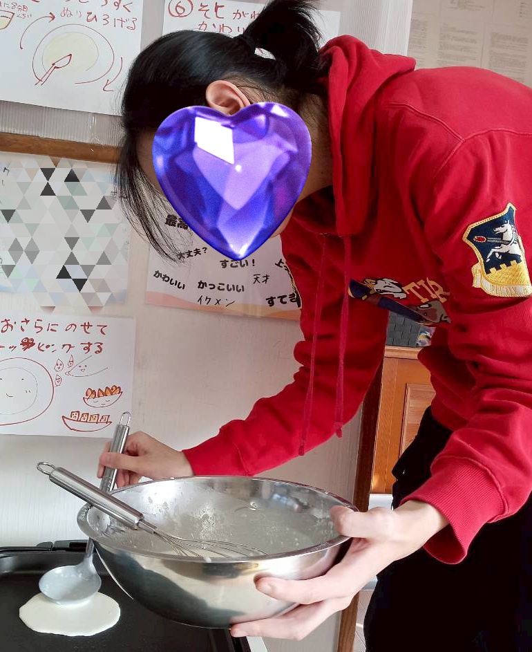 小麦粉を計ってボウルに入れ、ダマにならないように牛乳を少しずつ