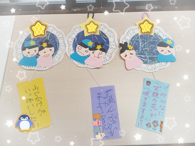 今月の製作はビー玉転がしをして天の川を作りました☆彡