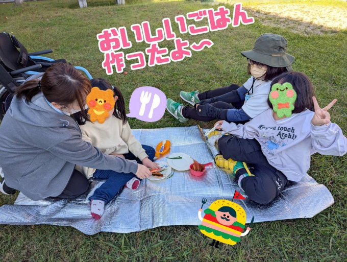 きれいな色の落ち葉を使ってままごと遊びをしました(^^♪