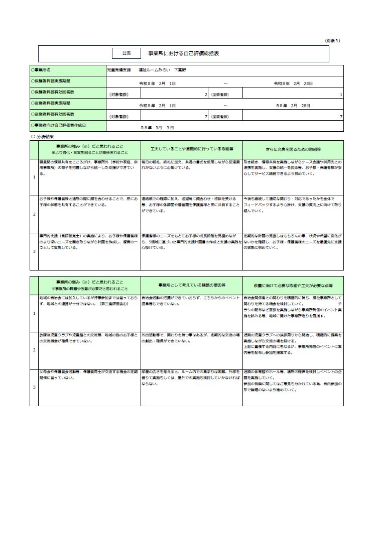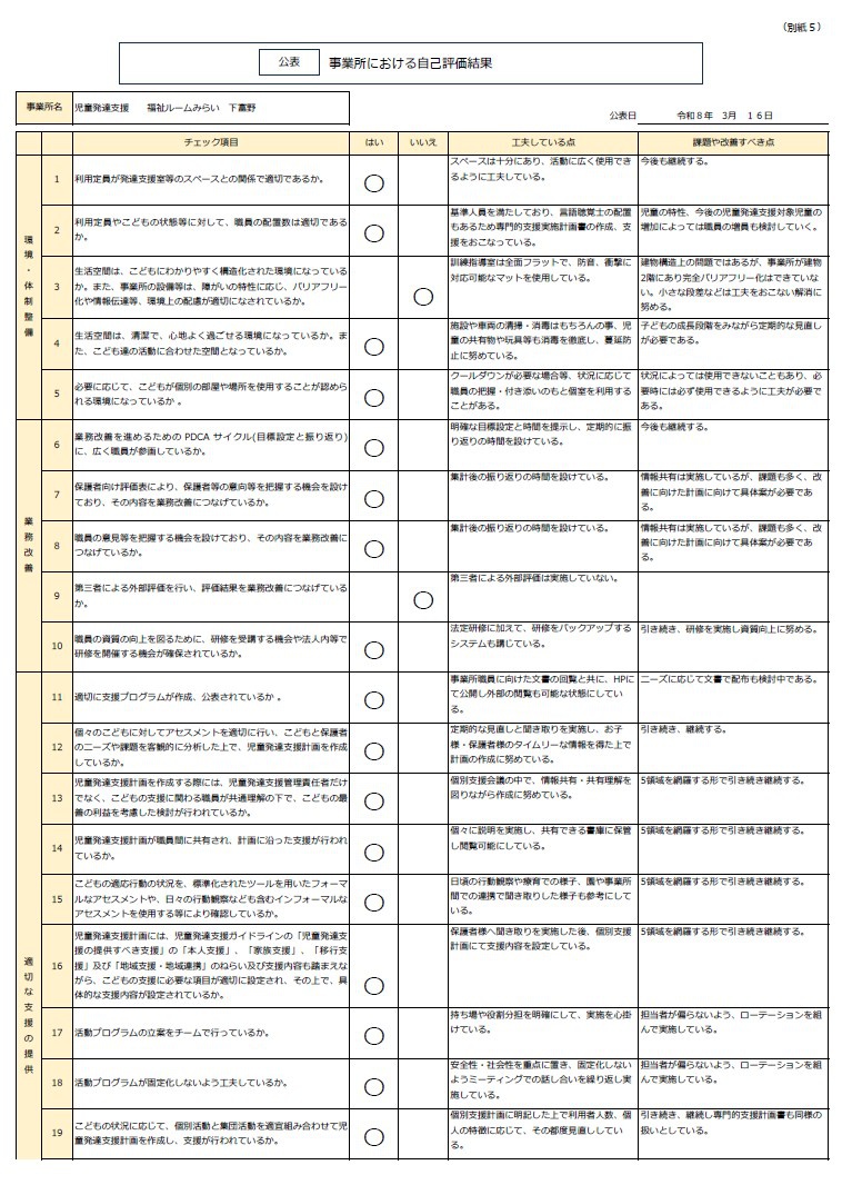 2026.03.16 令和7年度児童発達支援自己評価を公表します