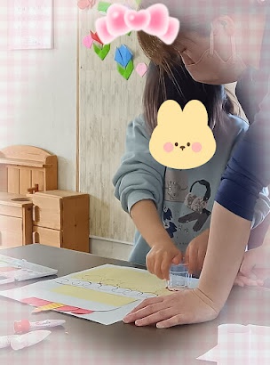 各自、自分の誕生日と名前、好きな絵などを書き完成させていましたよ☆