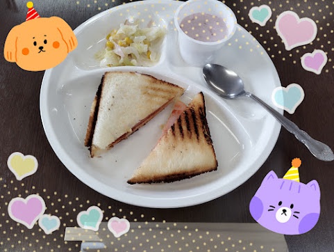 メニューはホットサンド、コールスローサラダ、フルーチェです☆