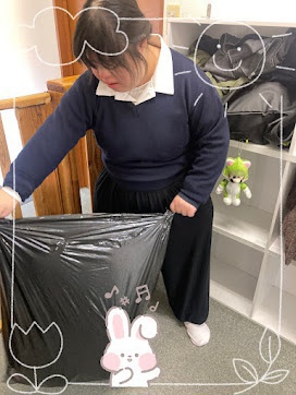 高校生のお友だちが今日はルームのごみを集めています♪♪